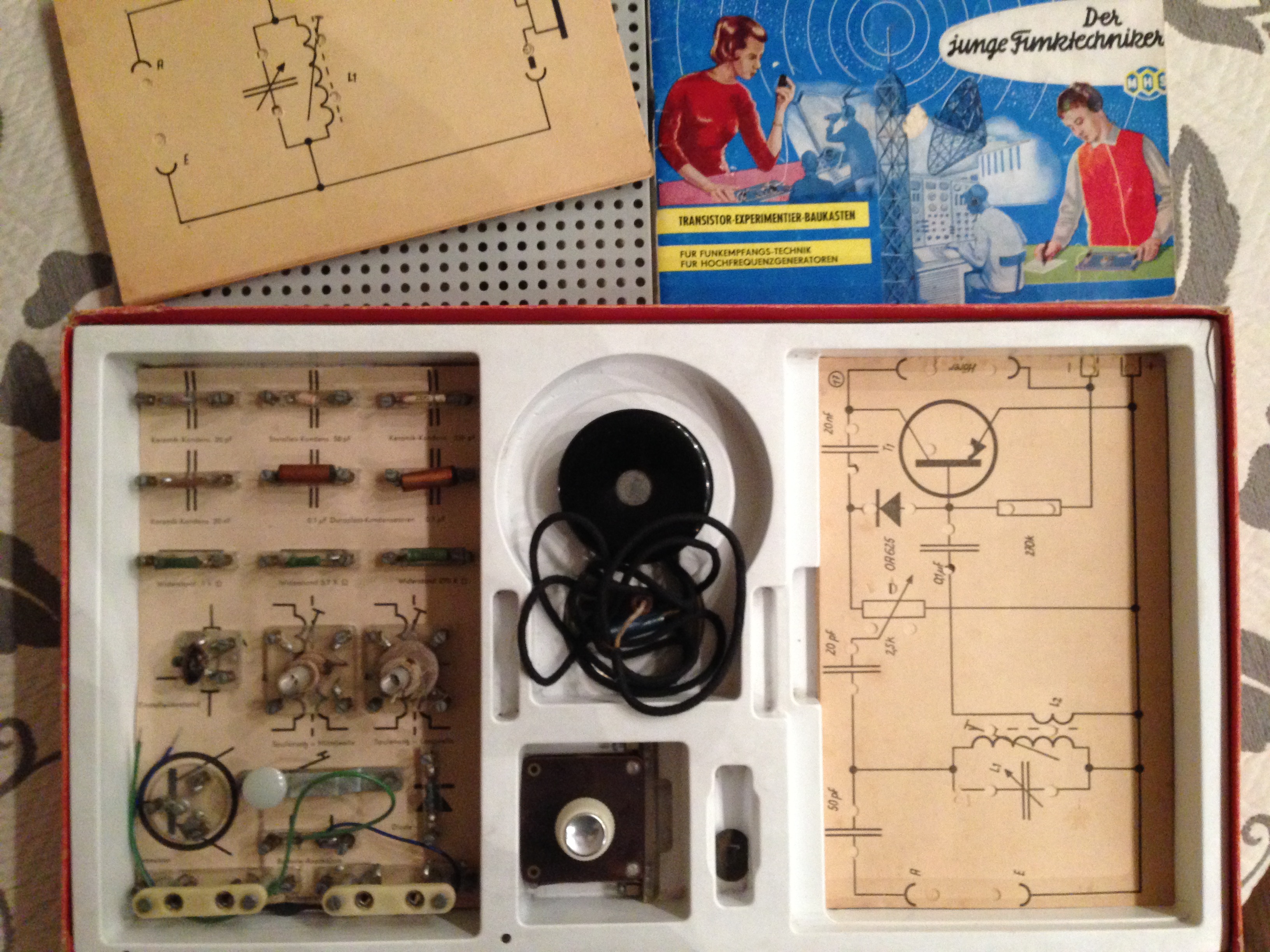 Mitte der 60er Jahre brachte MHS, Moritz Hädrich KG, Saalfeld/Saale, den mit einem Transistor und einer Diode bestückten Experimentierkasten "Der junge Funktechniker" heraus.