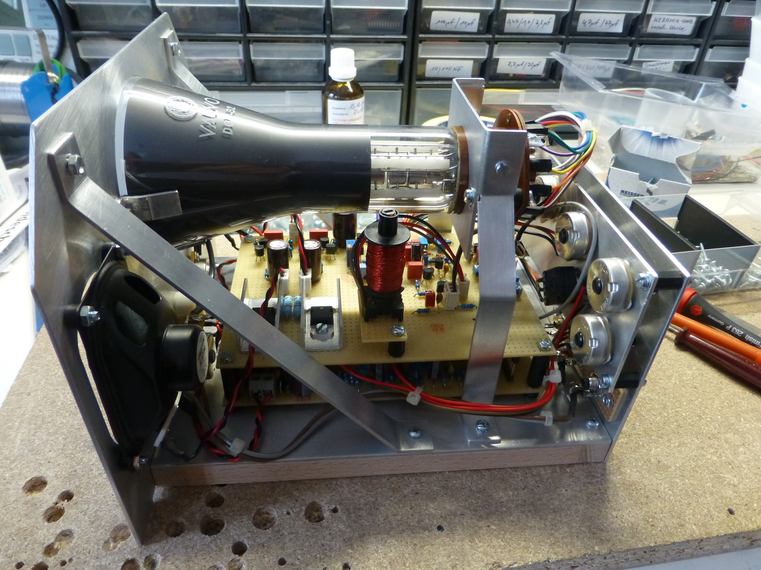Lang lang ist es her aber bekanntlich braucht alles seine Zeit....und neben dem Bastelhobby zudem auch die Familie und die Arbeit. ;-) Nein, natürlich anders herum. Da er nun fertig ist, mein Selbstbau Vintagestyled Video-TV-Monitor mit Osziröhre, hier wie versprochen eine kurze Vorstellung des Ergebnisses der langwierigen Bastelei. Mag sein, dass das hier nicht ganz hinein passt, doch da die Schaltungsgrundlage den Bezug zum Experimentierkasten herstellt, sei es mir verziehen.